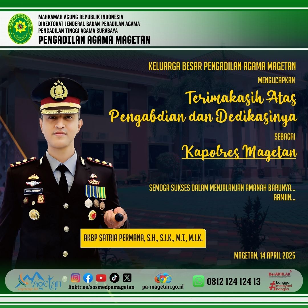 Terimakasih Atas Pengabdian & Dedikasi AKBP Satria Permana, S.H, S.I.K, M.T, M.I.K Written by Admin on 14 April 2025. Written by Admin on 14 April 2025. Hits: 325
