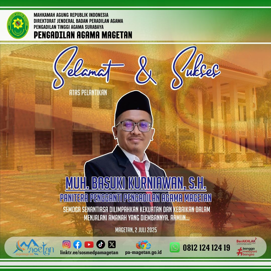 Selamat & Sukses Muh. Basuki Kurniawan, S.H Written by Admin on 02 July 2025. Written by Admin on 02 July 2025. Hits: 302