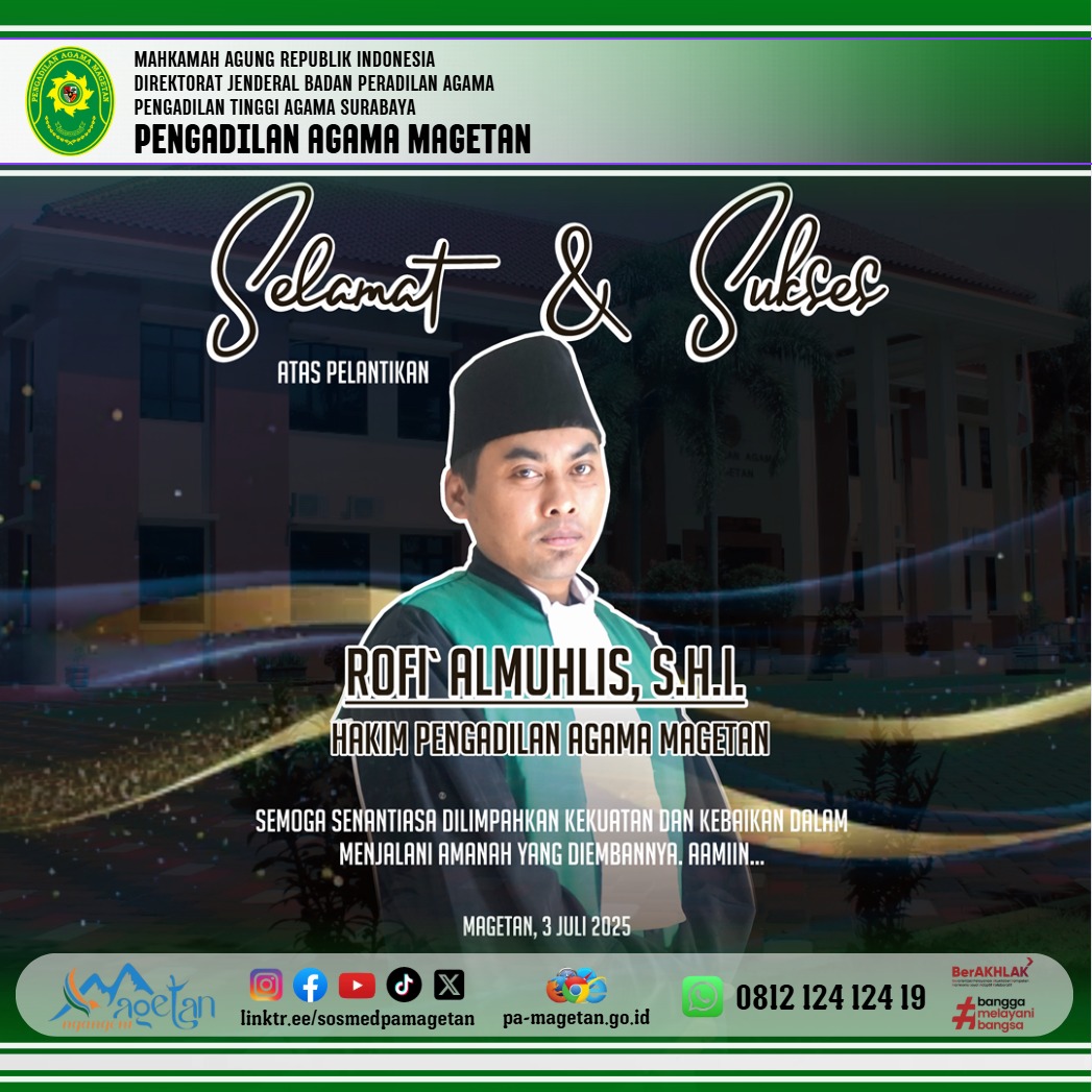 Selamat & Sukses Rofi' Almuhlis, S.H.I Written by Admin on 03 July 2025. Written by Admin on 03 July 2025. Hits: 236