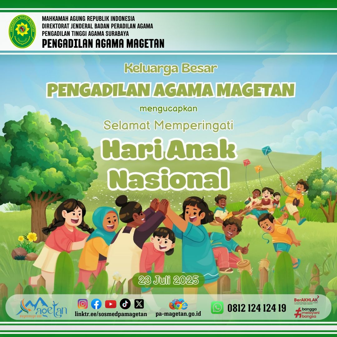 Selamat Hari Anak Nasional Tahun 2025 Written by Admin on 23 July 2025. Written by Admin on 23 July 2025. Hits: 244