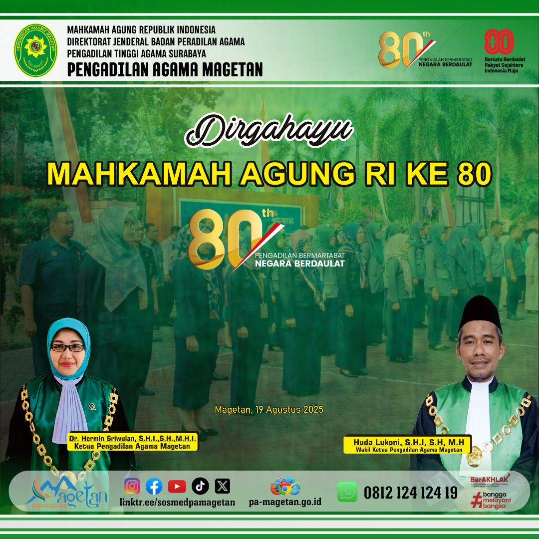Dirgahayu Mahkamah Agung RI Ke-80 Written by Admin on 19 August 2025. Written by Admin on 19 August 2025. Hits: 222
