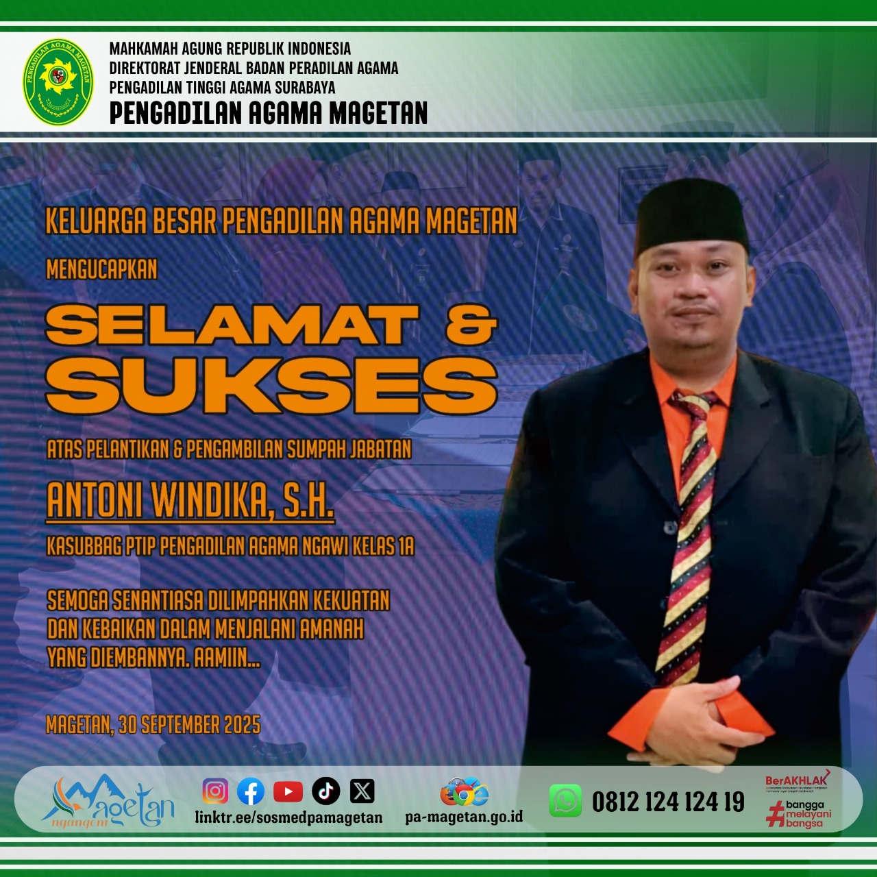 Selamat & Sukses Antoni Windika, S.H. Written by Admin on 30 September 2025. Written by Admin on 30 September 2025. Hits: 289