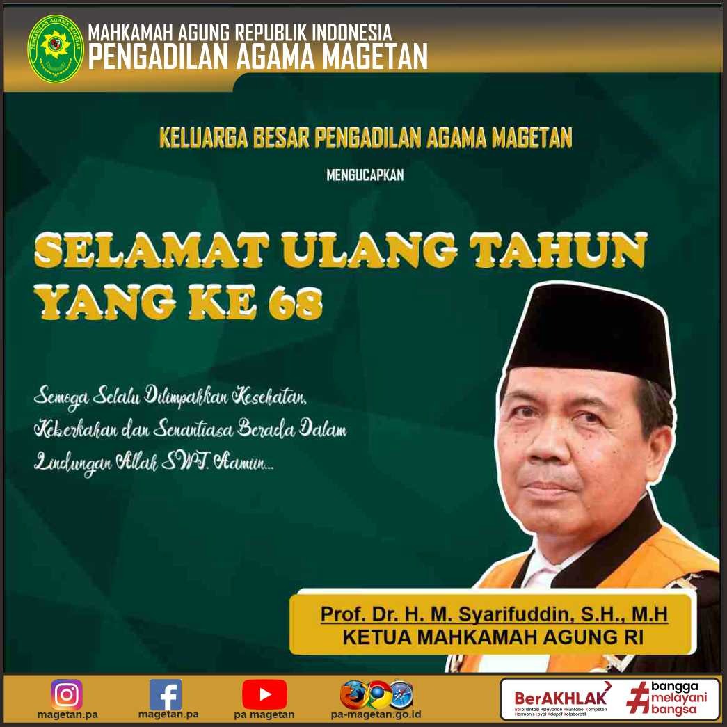 Ucapan Selamat Ulang Tahun Prof. Dr. H. M. Syarifuddin, S.H., M.H Written by Admin on 18 October 2022. Written by Admin on 18 October 2022. Hits: 791