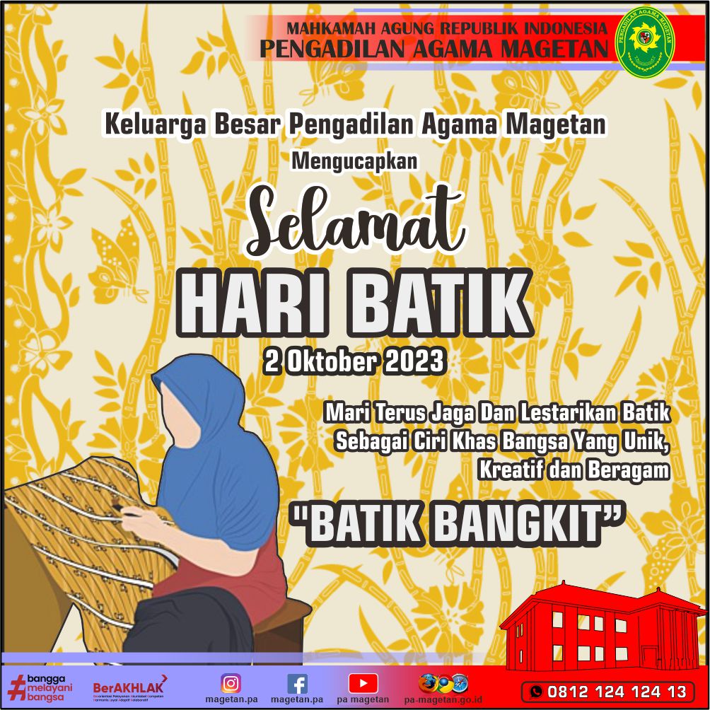 Selamat Hari Batik (2 Oktober 2023) Written by Admin on 02 October 2023. Written by Admin on 02 October 2023. Hits: 655