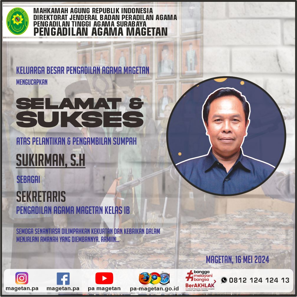 Selamat & Sukses Sukirman, S.H Written by Admin on 16 May 2024. Written by Admin on 16 May 2024. Hits: 559