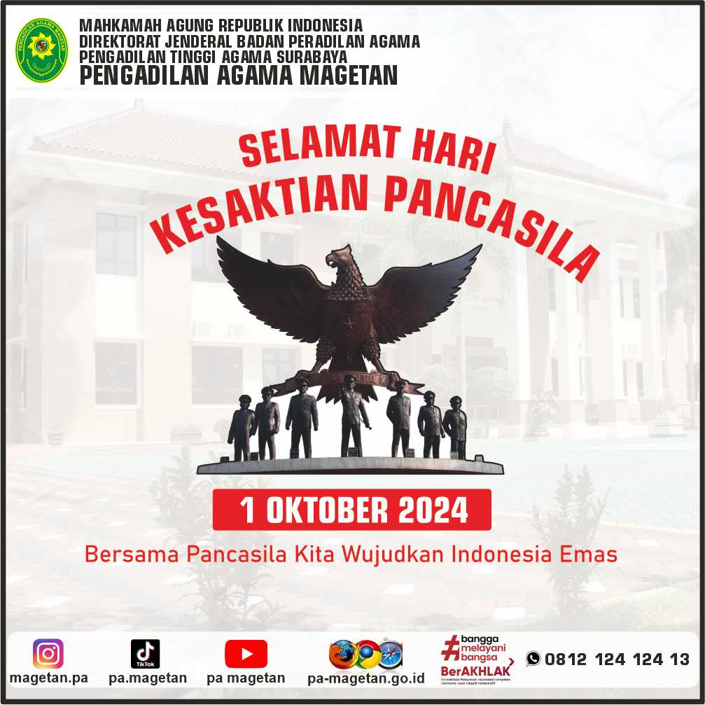 Selamat Hari Kesaktian Pancasila (1 Oktober 2024) Written by Admin on 01 October 2024. Written by Admin on 01 October 2024. Hits: 446