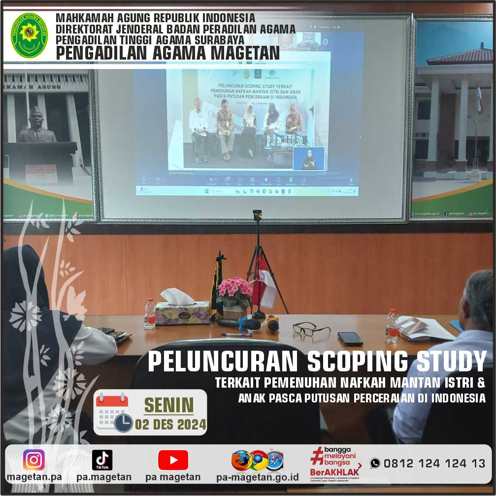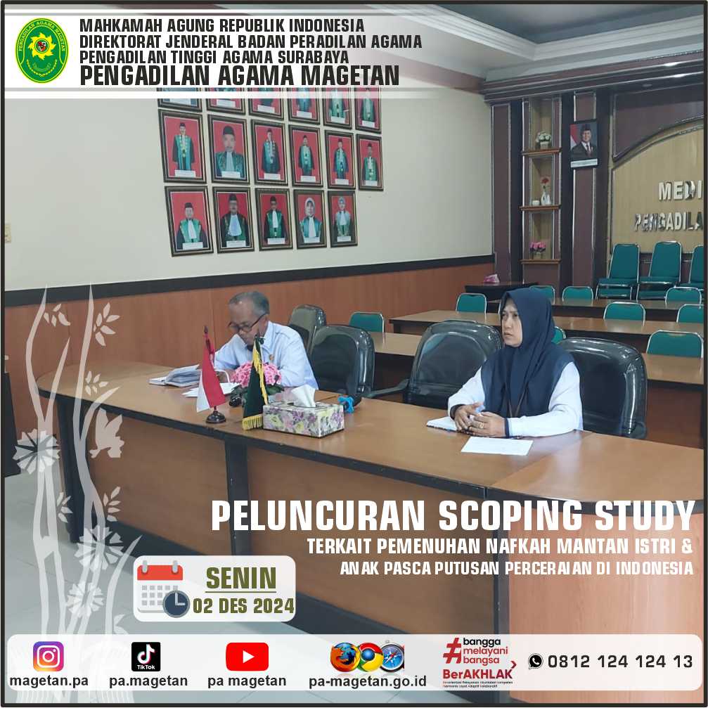 Magetan | pa-magetan.go.id | Berkomitmen mendukung Pemenuhan Nafkah Mantan Istri dan Anak Pasca Perceraian, Ketua dan Panitera Pengadilan Agama Magetan mengikuti kegiatan peluncuran Scoping Study secara virtual dari media center Pengadilan Agama Magetan.