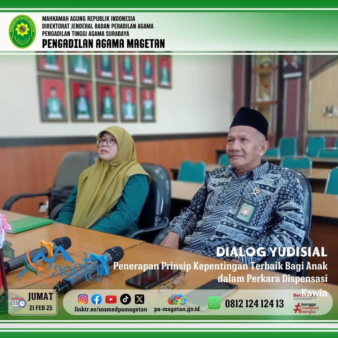 Magetan | pa-magetan.go.id | Pengadilan Agama Magetan mengikuti Dialog Yudisial " Penerapan Prinsip Kepentingan Terbaik Bagi Anak Dalam Perkara Dispensasi Kawin " yang diselenggarakan oleh Direktorat Jenderal Badan