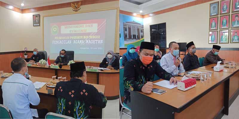Magetan | pa-magetan.go.id | Monitoring dan Evaluasi (monev) kembali dilakukan oleh Pengadilan Agama Magetan. Monev kali ini dilakukan kepada Penyedia Layanan Posbakum di Pengadilan Agama Magetan. (Selasa, 22 Juni 2021).