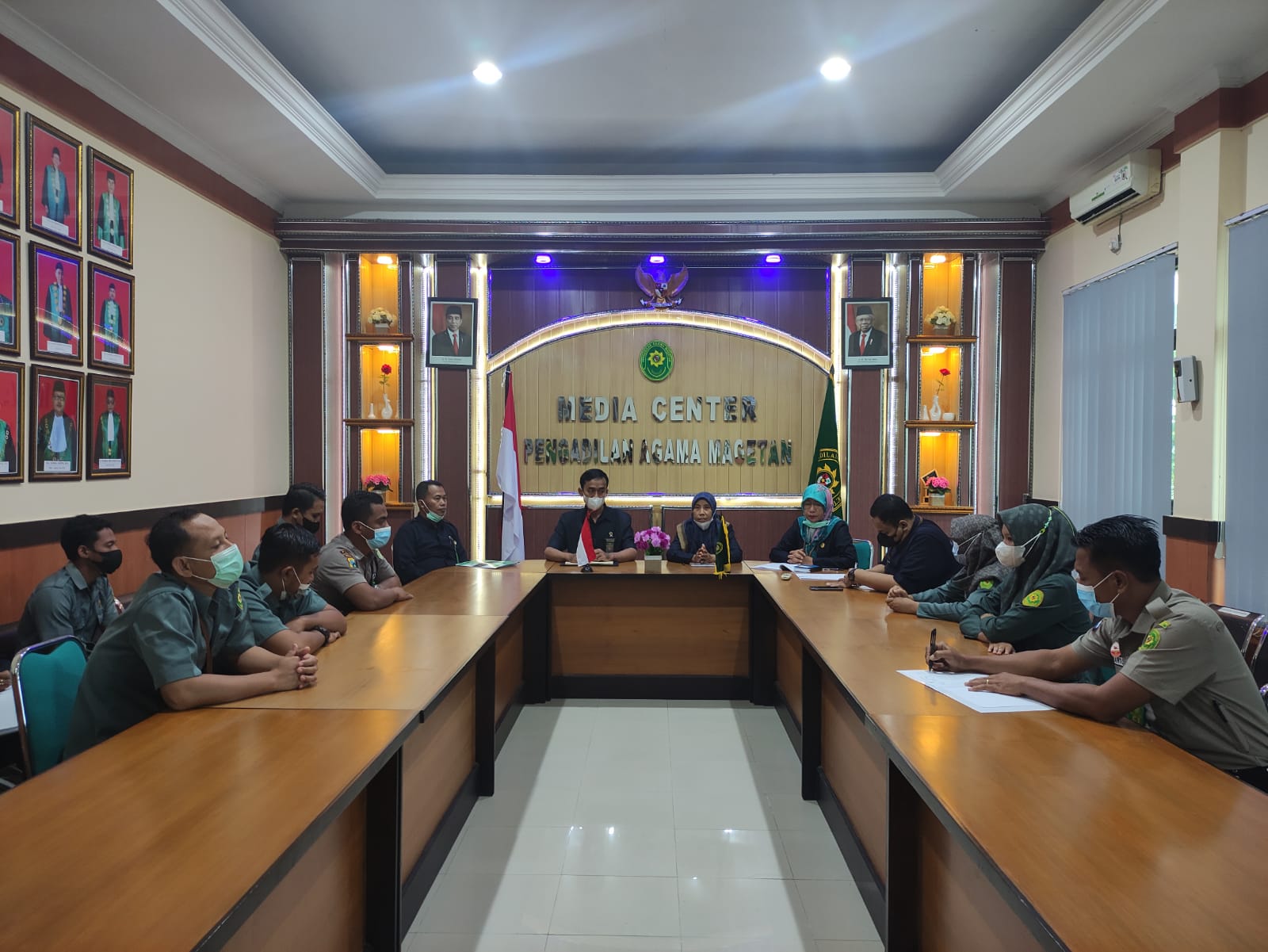 Magetan | pa-magetan.go.id | Pengadilan Agama Magetan mengadakan kegiatan evaluasi kinerja dan pembinaan Pegawai Pemerintah Non Pegawai Negeri (PPNPN), Rabu (29/12/2021). Dilaksanakan di Ruang Pertemuan Pengadilan Agama Magetan, kegiatan ini dihadiri oleh Ketua, Wakil Ketua, Panitera dan Sekretaris Pengadilan Agama Magetan. Hadir pula Kasubbag Umum dan Keuangan serta Kasubbag Kepegawaian.