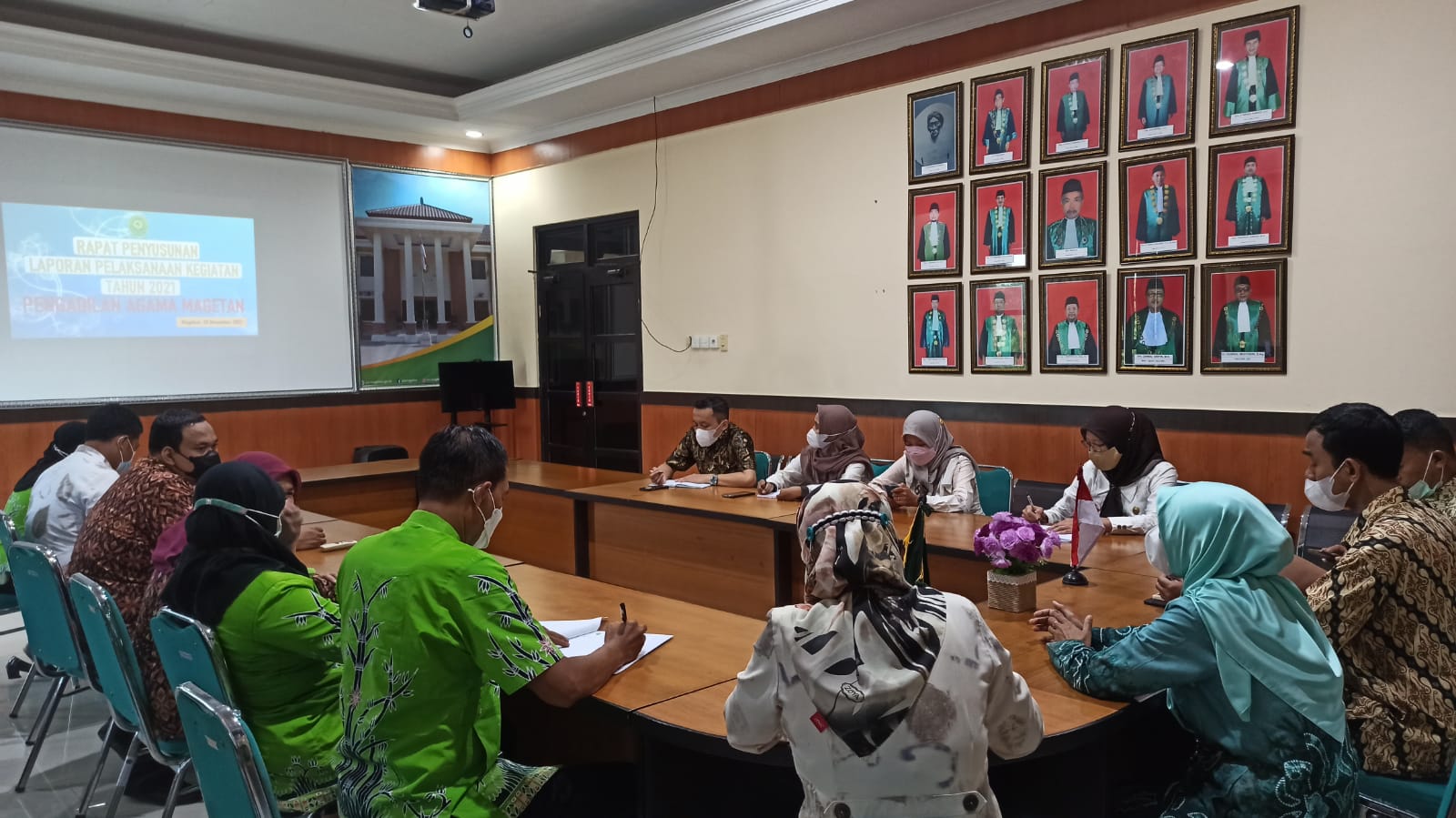 Magetan | pa-magetan.go.id | Pengadilan Agama Magetan melaksanakan Rapat Koordinasi Penyusunan Laporan Pelaksanaan Kegiatan Tahun 2021, Rabu (29/12/2021). Dilaksanakan di Ruang Pertemuan Pengadilan Agama Magetan, kegiatan ini dihadiri oleh Ketua, Wakil Ketua, Panitera dan Sekretaris Pengadilan Agama Magetan serta seluruh TIM Penyusun Laporan Pelaksanaan Tahun 2021