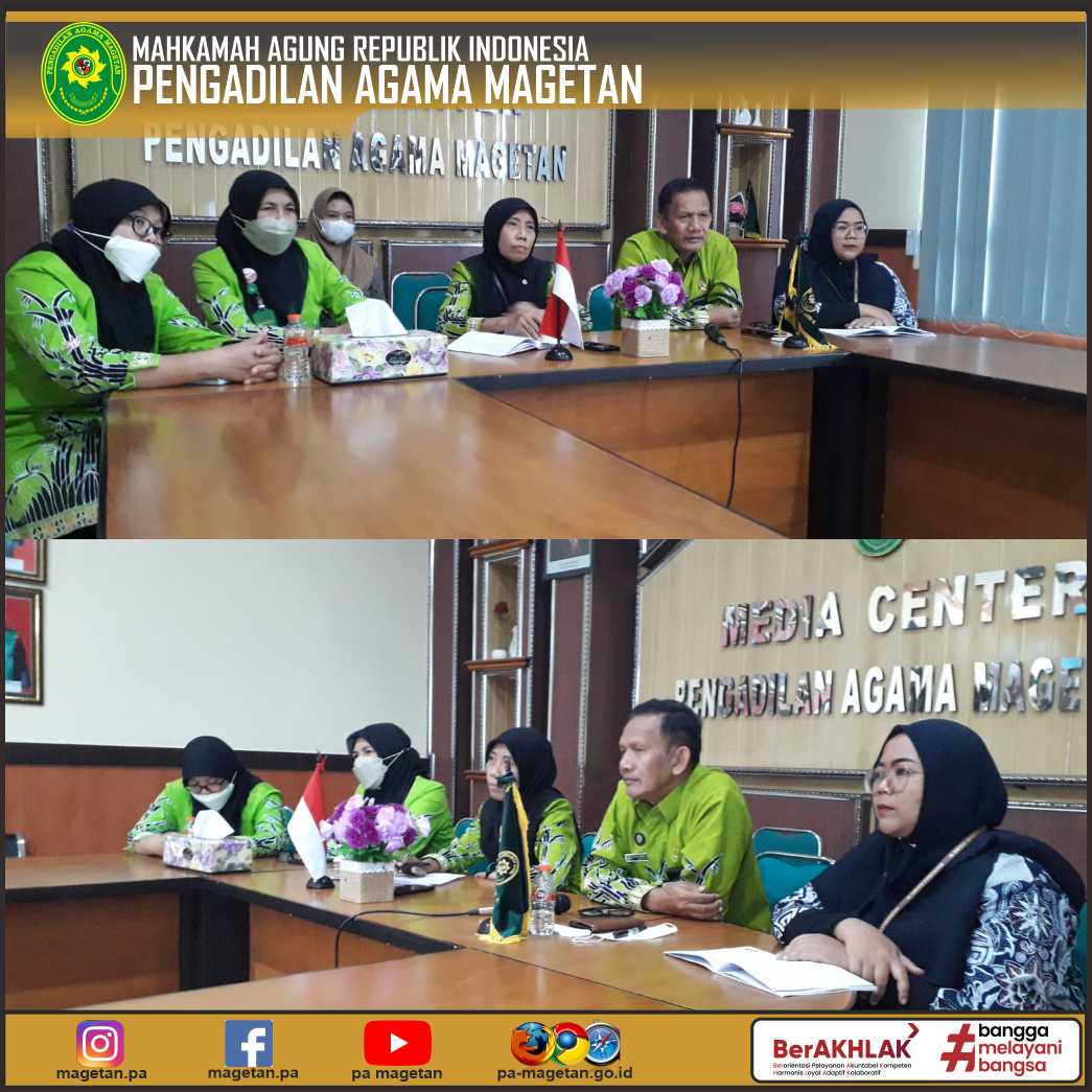 Magetan | pa-magetan.go.id | Pengadilan Agama Magetan mengikuti Bimbingan Teknis Peningkatan Kompetensi Tenaga Teknis di Lingkungan Peradilan Agama secara online dari Media Center Pengadilan Agama Magetan. Kegiatan yang diselenggarakan oleh Direktorat Jenderal Badan Peradilan Agama Mahkamah Agung RI ini dilaksanakan dalam rangka peningkatan kualitas dan kapasitas tenaga teknis di lingkungan peradilan agama dalam permasalahan teknis yustisial.