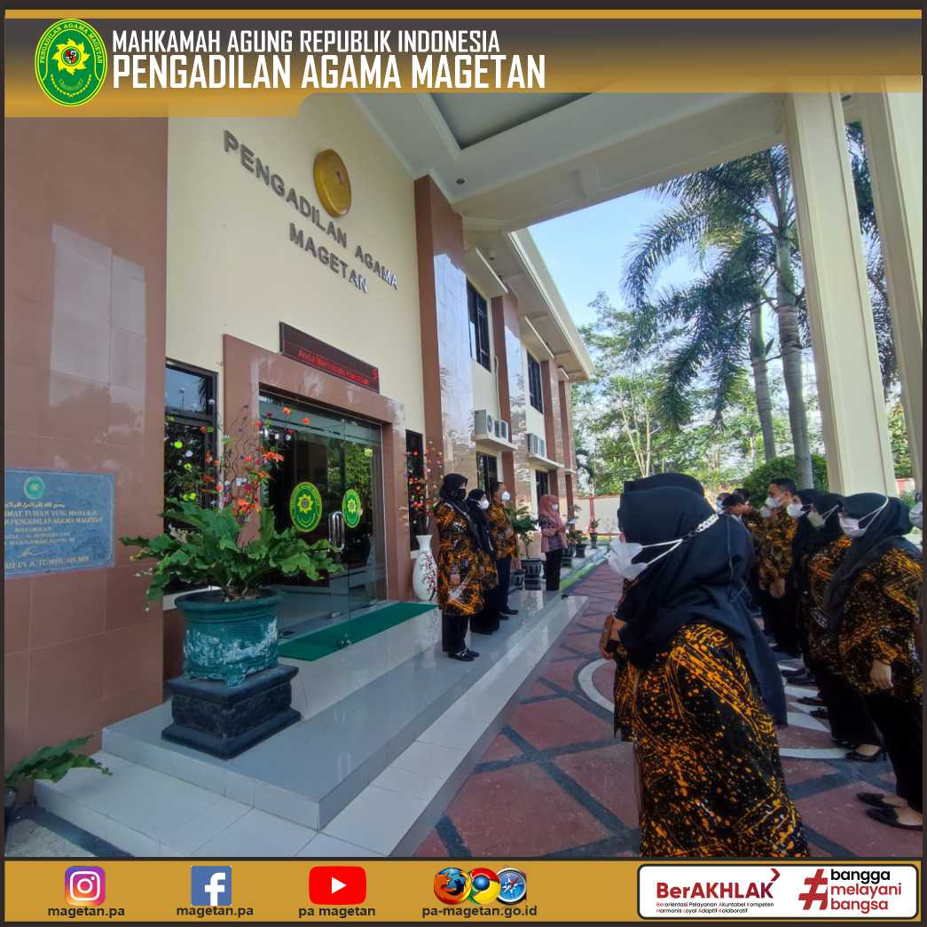 Magetan | pa-magetan.go.id | Pengadilan Agama Magetan melaksanakan Apel Jum'at Sore yang dipimpin oleh Ketua Pengadilan Agama Magetan (YM. Eny Rianing Taro, S.Ag., M.Sy). Apel dilaksanakan dengan mengumandangkan 8 Nilai Utama Mahkamah Agung dan 10 Budaya Malu. Dalam amanatnya Beliau menyampaikan marilah kita sama-sama meningkatkan kedisiplinan kita dan melaksanakan tugas sesuai dengan peraturan yang berlaku. Kita harus dapat melaksanakan tugas sesuai dengan peraturan yang ada, sehingga kita dapat menjalankan tugas dan menyelesaikan tugas dengan baik.