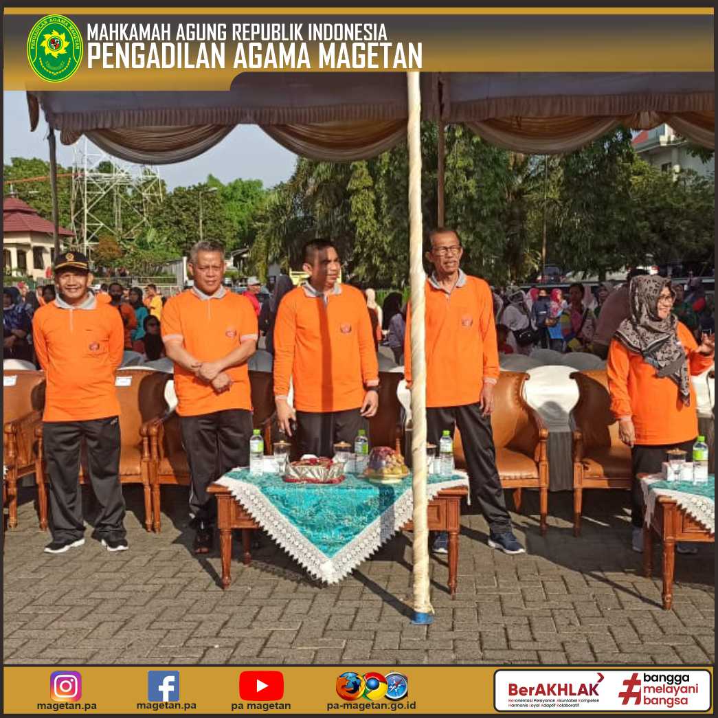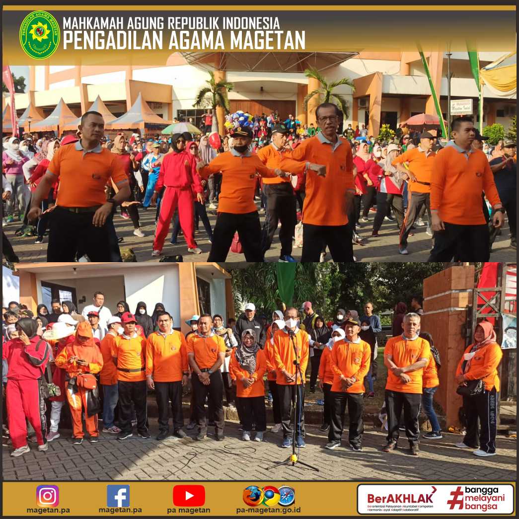 Kegiatan kali ini diawali dengan Senam Bersama dan Jalan Santai ini dilaksanakan di Gor Ki Mageti Kabupaten Magetan. Kegiatan yang dibuka langsung oleh Bupati Magetan (Dr. Drs. H. Suprawoto, S.H, M.Si) ini diikuti oleh seluruh forkopim Magetan dan Masyarakat Magetan.