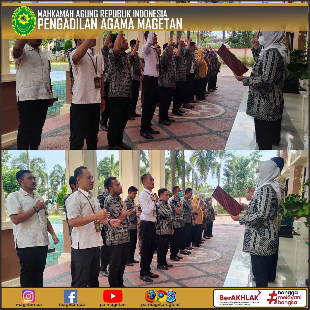 Selamat berlibur bersama keluarga, mengistirahatkan pikiran kita dan terus mendekatkan diri kepada Allah SWT. Semoga minggu depan bisa kembali beraktivitas pada hari Senin depan dengan semangat baru. Apel diikuti oleh seluruh pegawai Pengadilan Agama Magetan dan diakhiri dengan do'a.