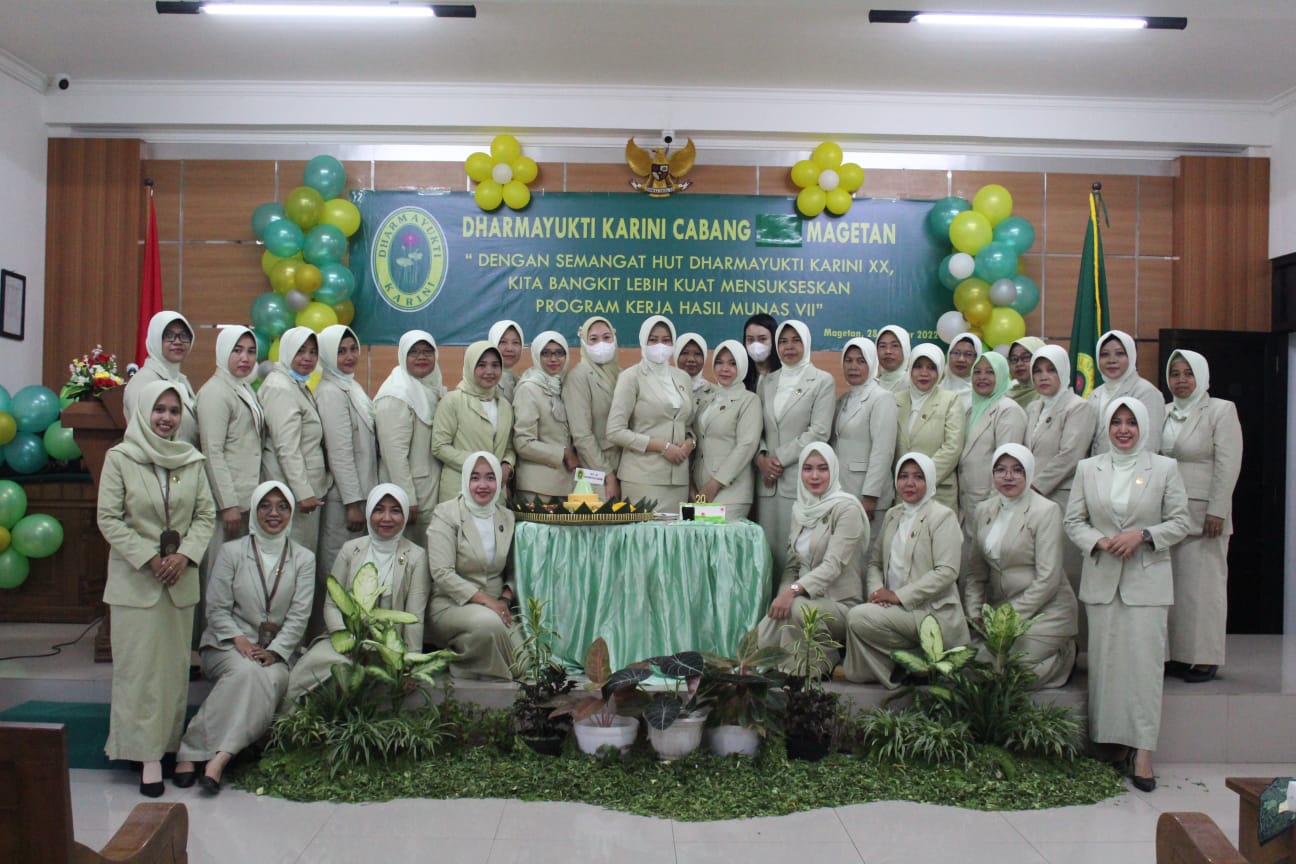Keluarga besar Dharmayukti Karini Cabang Magetan mengadakan pertemuan Rutin yang bertempat di Pengadilan Negeri Magetan, 28 Oktober 2022. Pertemuan tersebut diadakan untuk memperingati dan memeriahkan Hari Ulang Tahun Dharmayukti yang ke 20. Acara dimulai pukul 08.30 dengan mengambil Tema yaitu “Dengan Semangat HUT Dharmayukti Karini XX, Kita Bangkit Lebih Kuat Mensukseskan Program Kerja Hasil Munas VII”. Tema tersebut mengisyaratkan sebuah pesan bagi kita semua tentang pentingnya semangat kebangkitan setelah kita menjalani masa pandemi Covid-19 yang begitu berat.