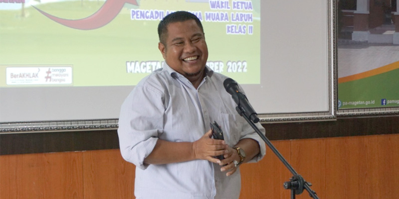 Selanjutnya YM. Syahrullah, S.H.I., MH, berkenan menyampaikan kesannya selama bertugas di Pengadilan Agama Magetan, beliau menyampaikan rasa terimaksihnya telah diterima di Pengadilan Agama Magetan dengan penuh kekeluargaan sejak saat pertama menginjakkan kaki di Pengadilan Agama Magetan. Semoga silaturahmi ini tidak terputus hanya karena pindah tugas, dan tetap tejalin meskipun terpisah jarak, ungkap hakim kelahiran Sungai Pakning ini.