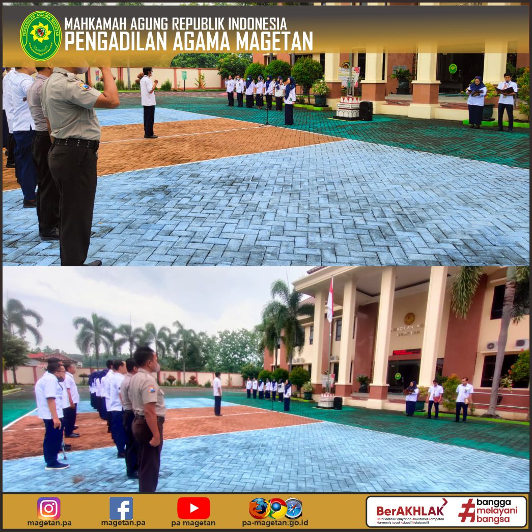 Magetan | pa-magetan.go.id | Pengadilan Agama Magetan melaksanakan kegiatan Apel Senin pagi, Apel kali ini dipimpin oleh Wakil Ketua Pengadilan Agama Magetan (YM. Wakhidah, S.H, S.H.I, M.H). Dalam arahannya beliau menyampaikan untuk tetap meningkatkan kinerja kita di penghujung tahun 2022. Beberapa target pekerjaan kita seperti laporan tahunan, Hawasbid dan Survey Kepuasan Masyarakat (SKM) agar segera dapat diselesaikan karena akan segera kita laporkan di kinsatker.