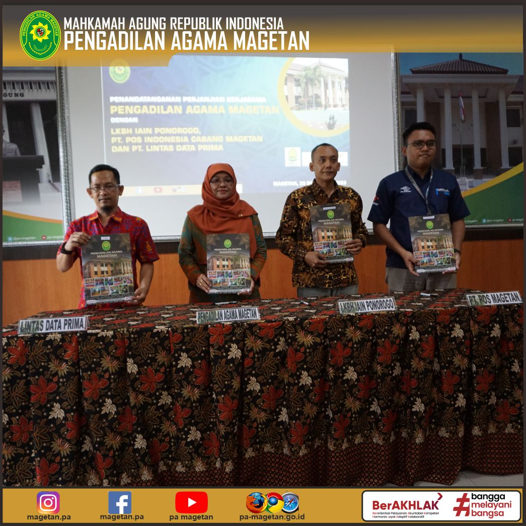 Perkuat Pelayanan Prima, PA Magetan Laksanakan Kerjasama Dengan LKBH IAIN Ponorogo, PT. Pos Indonesia Cabang Magetan dan PT. Lintas Data Prima