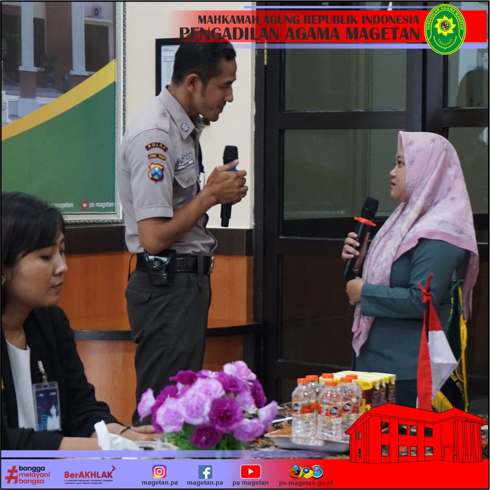 Dalam arahannya Ketua Pengadilan Agama Magetan (YM. Hj. Yurita Heldayanti, S.Ag., M.H) menyampaikan kegiatan ini merupakan salah satu Strategi pelayanan yang harus kita berikan, yaitu dengan cara bagaimana menyikapi suatu keadaan dan kenyataan dengan memberikan solusi untuk mampu keluar dari keadaan. Solusi ataupun cara diambil berdasarkan kondisi kebutuhan dan mampu memberikan jalan terbaik dari keadaan yang terjadi.