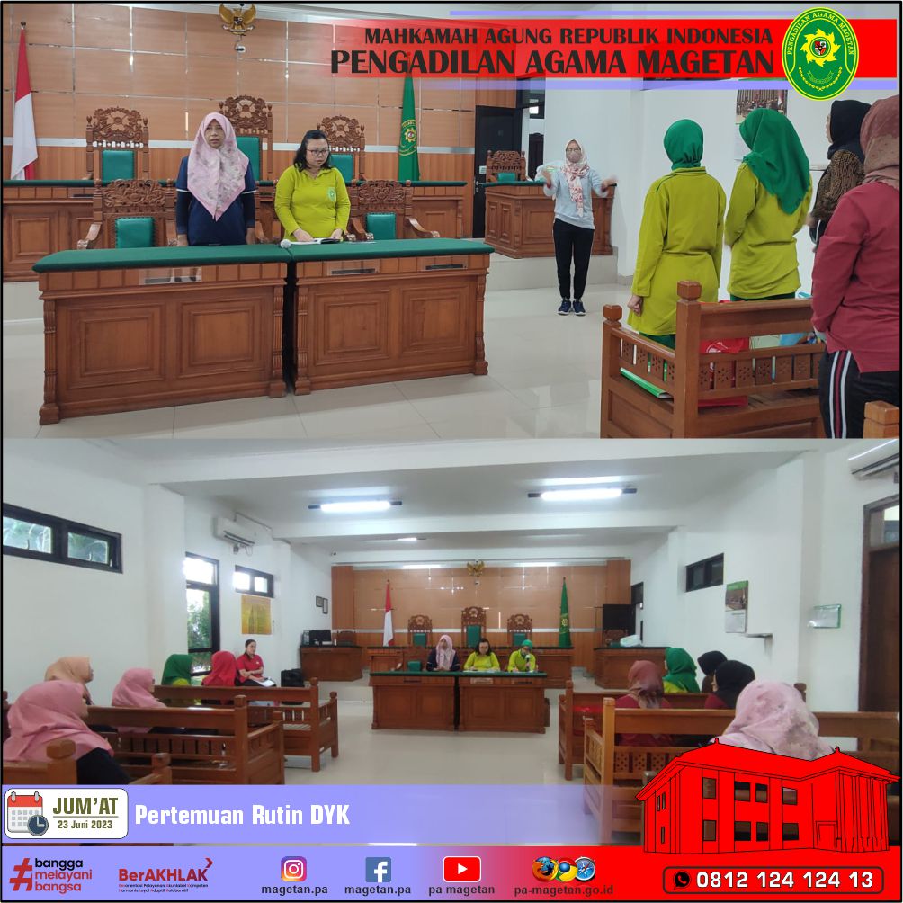 Magetan | pa-magetan.go.id | Dharmayukti Karini Cabang Magetan mengadakan Pertemuan Rutin yang bertempat di Pengadilan Negeri Magetan. Berbeda dengan pertemuan setiap bulannya, kali ini acara dimulai pukul 07.30 karena adanya kegiatan senam pagi bersama yang diikuti oleh seluruh anggota Dharmayukti Karini Cabang Magetan.