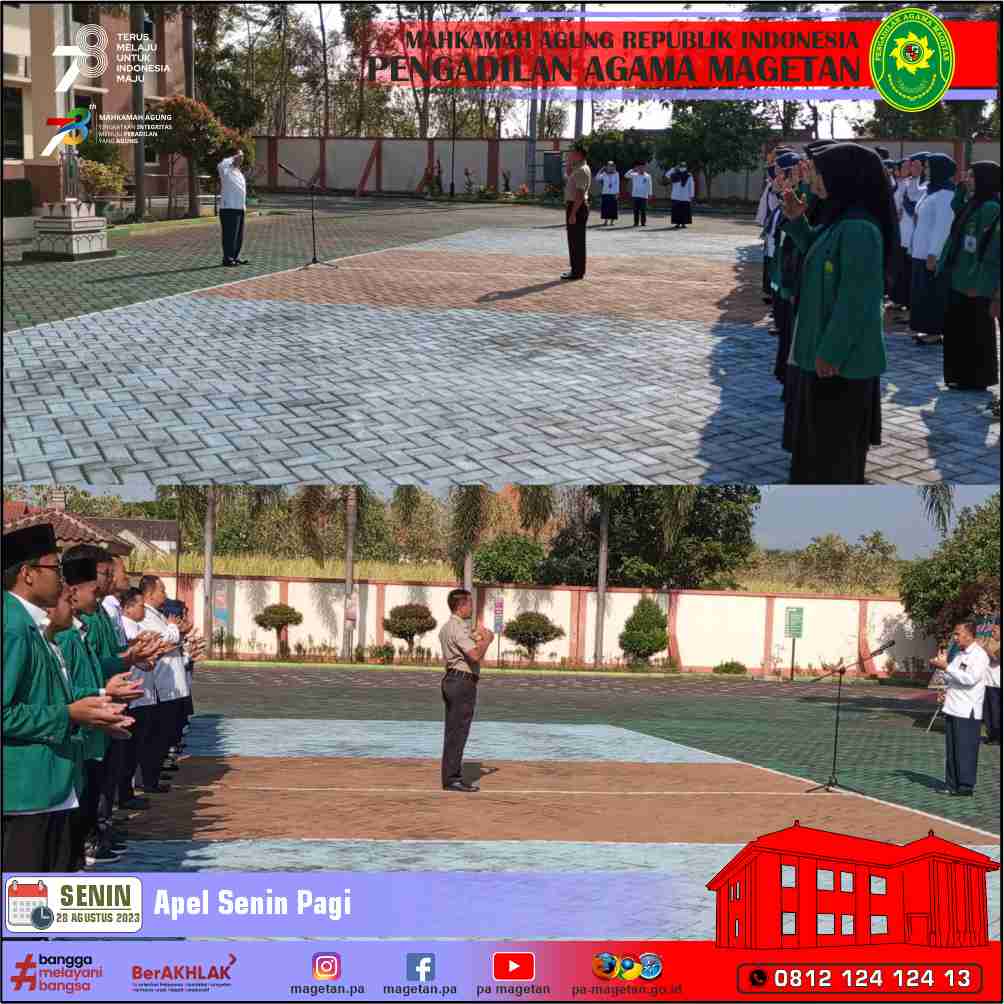Magetan | pa-magetan.go.id | Pengadilan Agama Magetan melaksanakan kegiatan Apel Senin pagi, Apel kali ini dipimpin oleh Hakim Pengadilan Agama Magetan (Dr. Drs. Sugeng, M. Hum). Beliau mengingatkan kepada seluruh Aparatur Pengadilan Agama Magetan untuk selalu bersyukur karena telah diberi kesehatan untuk bekerja hari ini.