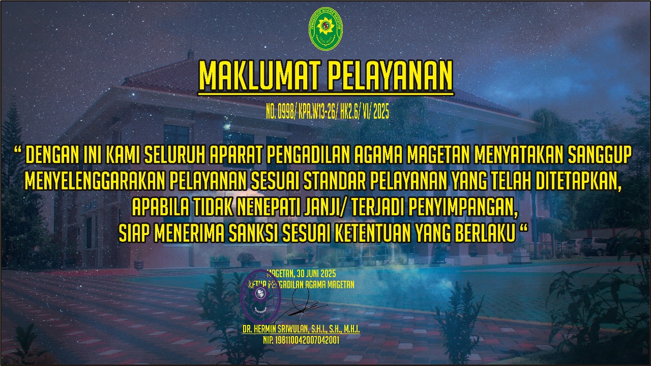 - Pengadilan menyediakan meja pengaduan untuk menerima pengaduan dari masyarakat atau pencari keadilan tentang mengenai penyelenggaraan peradilan termasuk pelayanan publik dan atau perilaku aparat pengadilan. Meja pengaduan tidak menerima pengaduan yang terkait dengan isi dari putusan atau tentang substansi perkara dan pengaduan tentang fakta atau peristiwa yang terjadi lebih dari 2 (dua) tahun sebelum pengaduan diterima. Khusus untuk pengaduan tentang pelayanan pengadilan harus disampaikan selambat-lambatnya 30 (tiga puluh) hah sejak pengadu menerima layanan pengadilan.