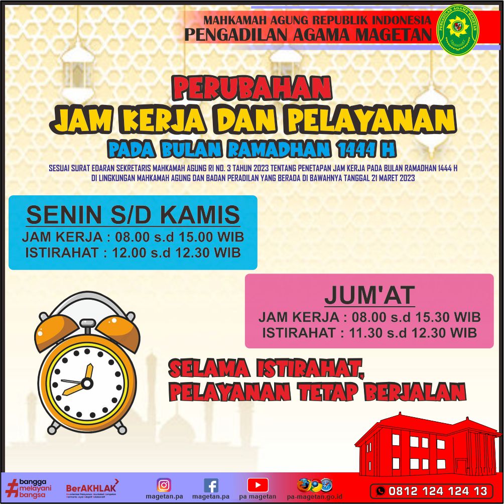 Perubahan Jam Kerja & Pelayanan Pada Bulan Ramadhan 1444 H