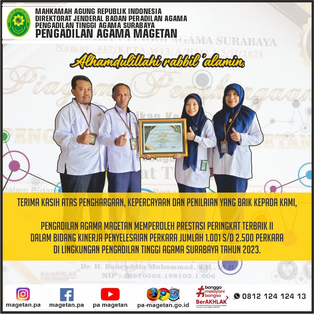 Prestasi Peringkat Terbaik II Dalam Bidang Kinerja Penyelesaian Perkara Jumlah 1.001 s/d 2.500