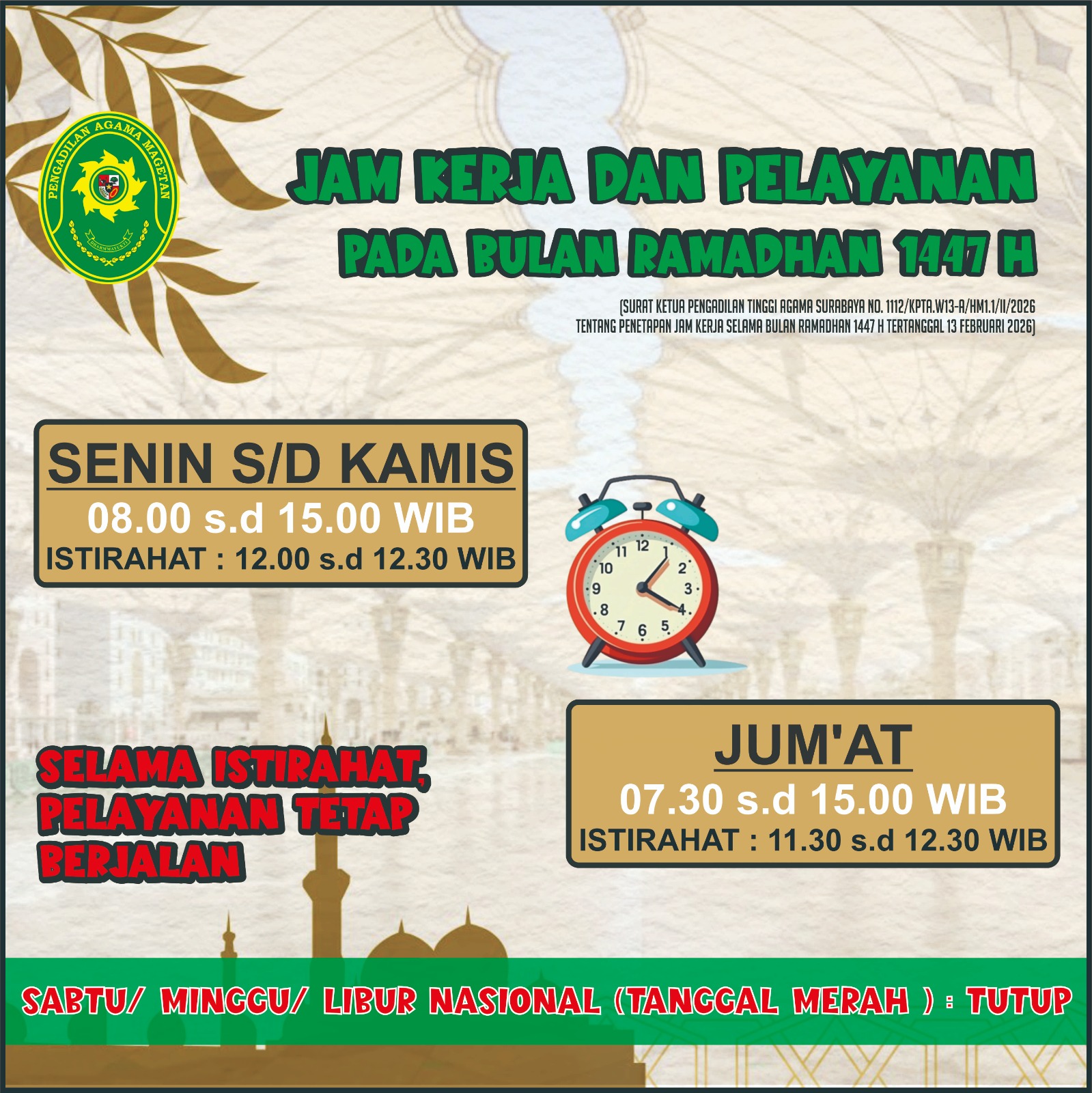 - Para pihak berperkara yang keberatan dan tidak menerima Putusan Pengadilan Tinggi Agama berhak menempuh upaya hukum kasasi dengan mendaftarkan permohonan kasasi selambat-lambatnya 14 (empat belas) hari kalender terhitung keesokan harinya setelah pemberitahuan Putusan Pengadilan Tinggi Agama diterima oleh para pihak. Jika hari ke-14 jatuh pada hari libur, maka penentuan hari ke-14 jatuh pada hari kerja berikutnya. Permohonan kasasi yang melampaui tenggang waktu tersebut di atas tidak dapat diterima dan berkas perkaranya tidak dikirimkan ke Mahkamah Agung dengan Penetapan Ketua Pengadilan Agama.
