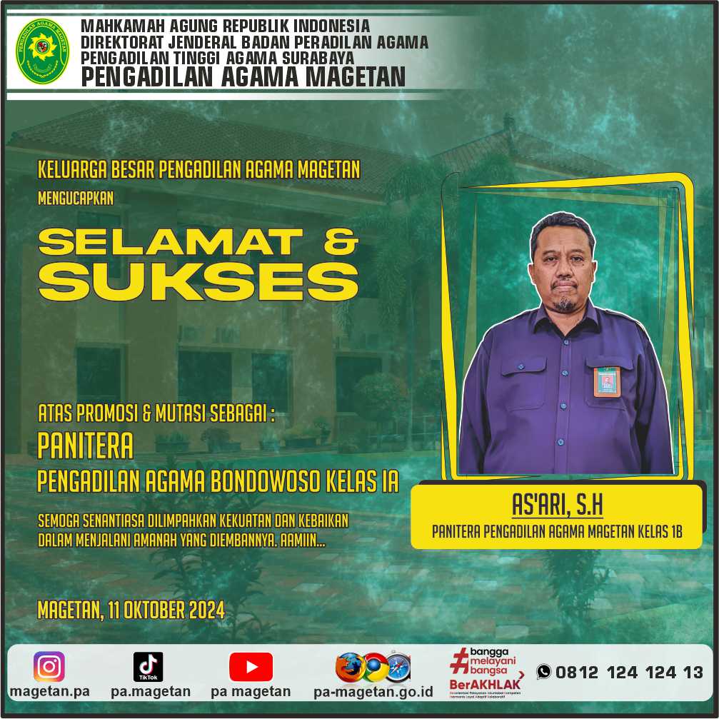 Selamat & Sukses As'ari, S.H Written by Admin on 11 October 2024. Written by Admin on 11 October 2024. Hits: 607