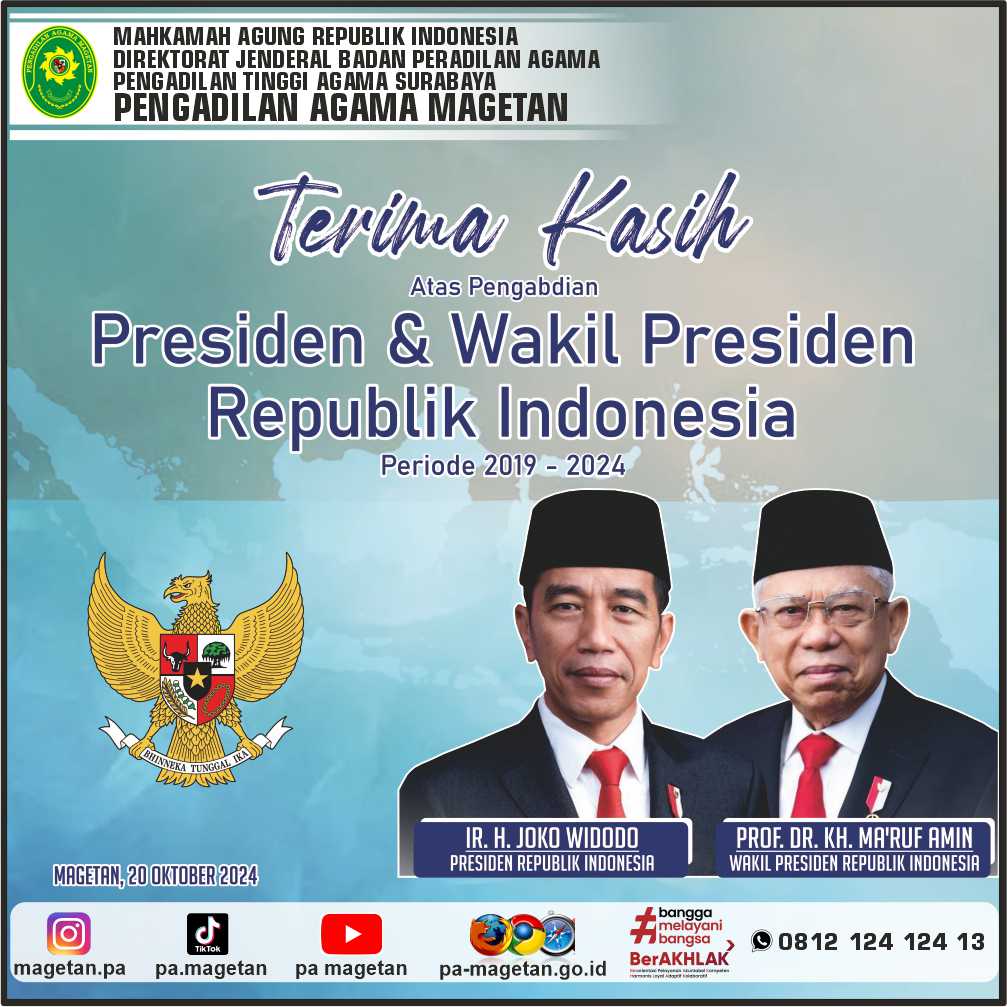 Terima Kasih Ir. H. Joko Widodo & Prof. Dr. K.H. Ma'ruf Amin Written by Admin on 20 October 2024. Written by Admin on 20 October 2024. Hits: 503
