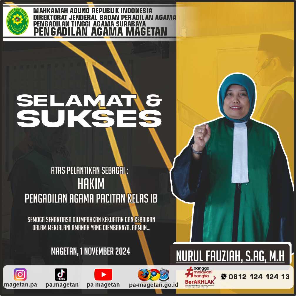 Selamat & Sukses Nurul Fauziah, S.Ag. M.H Written by Admin on 01 November 2024. Written by Admin on 01 November 2024. Hits: 583