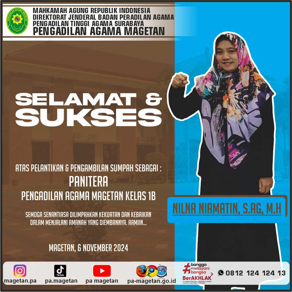 Selamat & Sukses Atas Pengambilan Sumpah & Pelantikan Nilna Niamatin, S.Ag, M.H Written by Admin on 06 November 2024. Written by Admin on 06 November 2024. Hits: 641