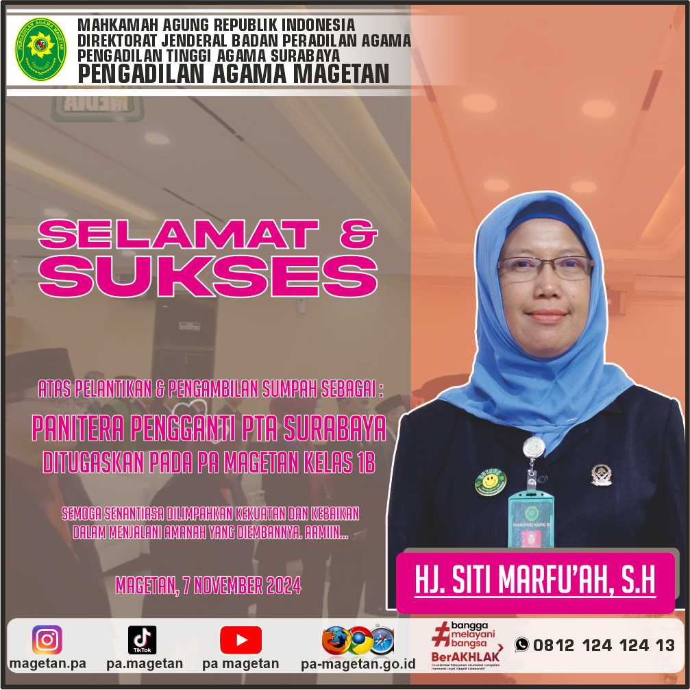 Selamat & Sukses Atas Pengambilan Sumpah & Pelantikan Hj. Siti Marfu'ah, S.H. Written by Admin on 07 November 2024. Written by Admin on 07 November 2024. Hits: 494