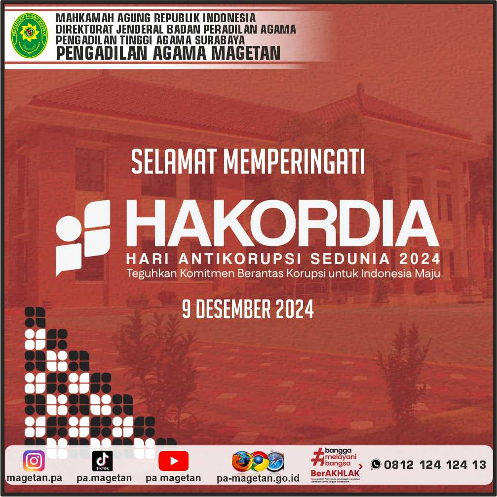 Selamat Memperingati Hari Anti Korupsi Sedunia Tahun 2024 Written by Admin on 09 December 2024. Written by Admin on 09 December 2024. Hits: 501