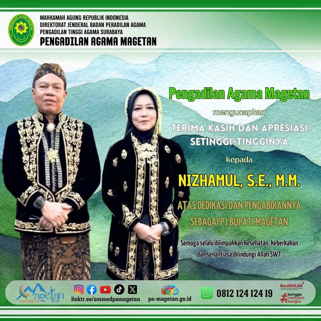 Terima Kasih & Apresiasi Setinggi-tingginya Kepada Bp. Nizhamul, S.E., M.M, Atas Dedikasi & Pengabdiannya Sebagai PJ Bupati Magetan. Written by Admin on 26 May 2025. Written by Admin on 26 May 2025. Hits: 494