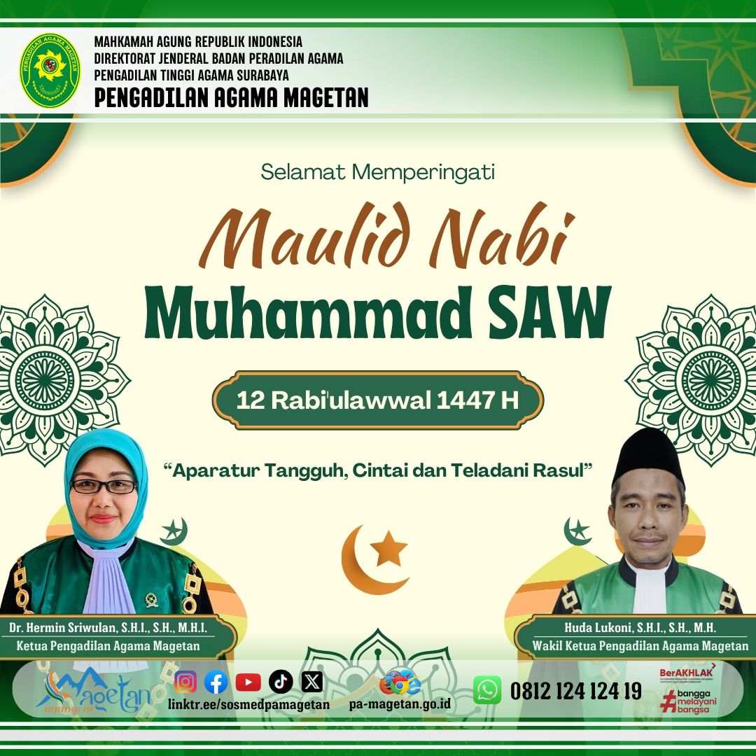 Selamat Memperingati Maulid Nabi Muhammad SAW (12 Rabi'ul Awwal 1447 H) Written by Admin on 05 September 2025. Written by Admin on 05 September 2025. Hits: 238