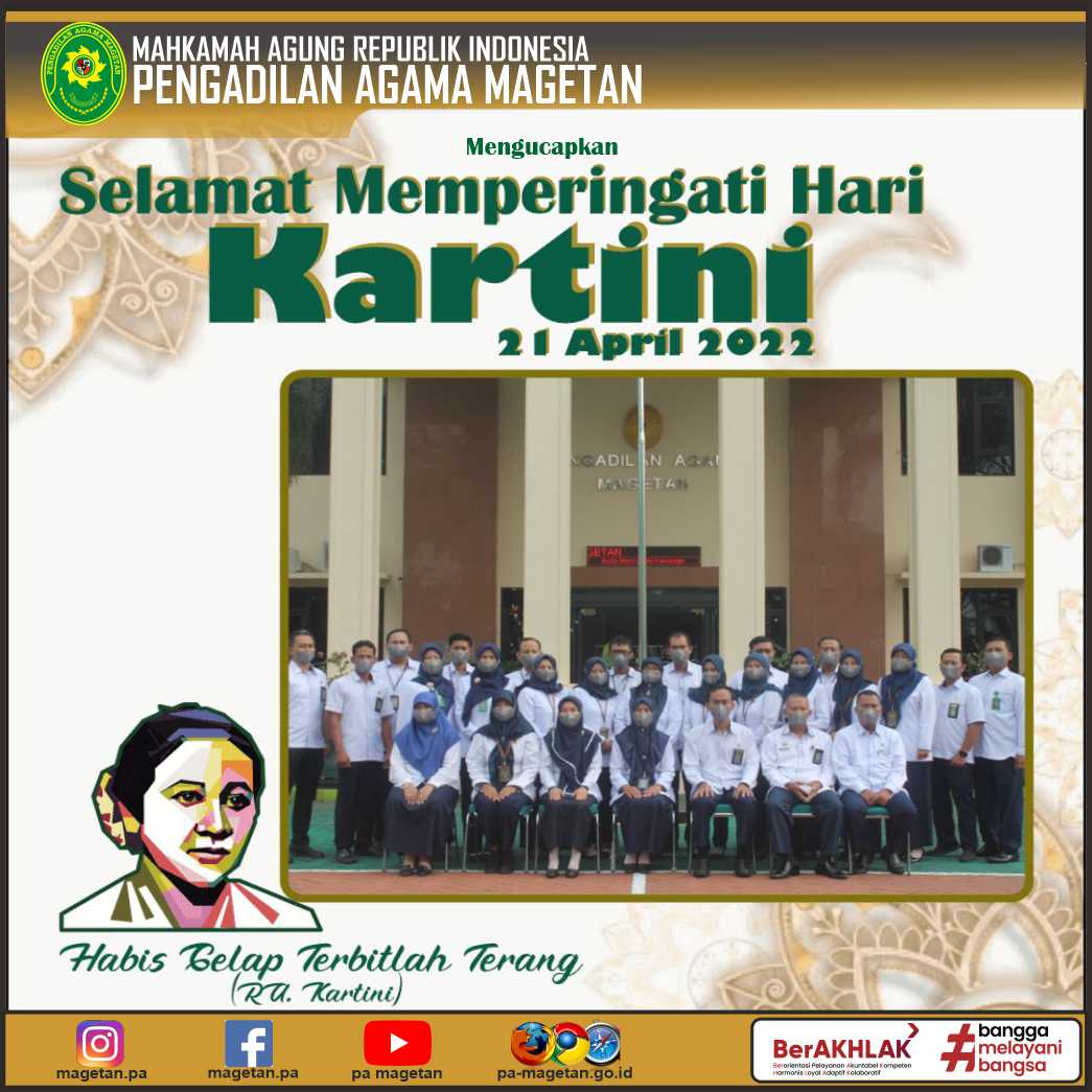 Pengadilan Agama Magetan Mengucapkan Selamat Memperingati Hari Kartini 21 April 2022 Written by Admin on 21 April 2022. Written by Admin on 21 April 2022. Hits: 1008