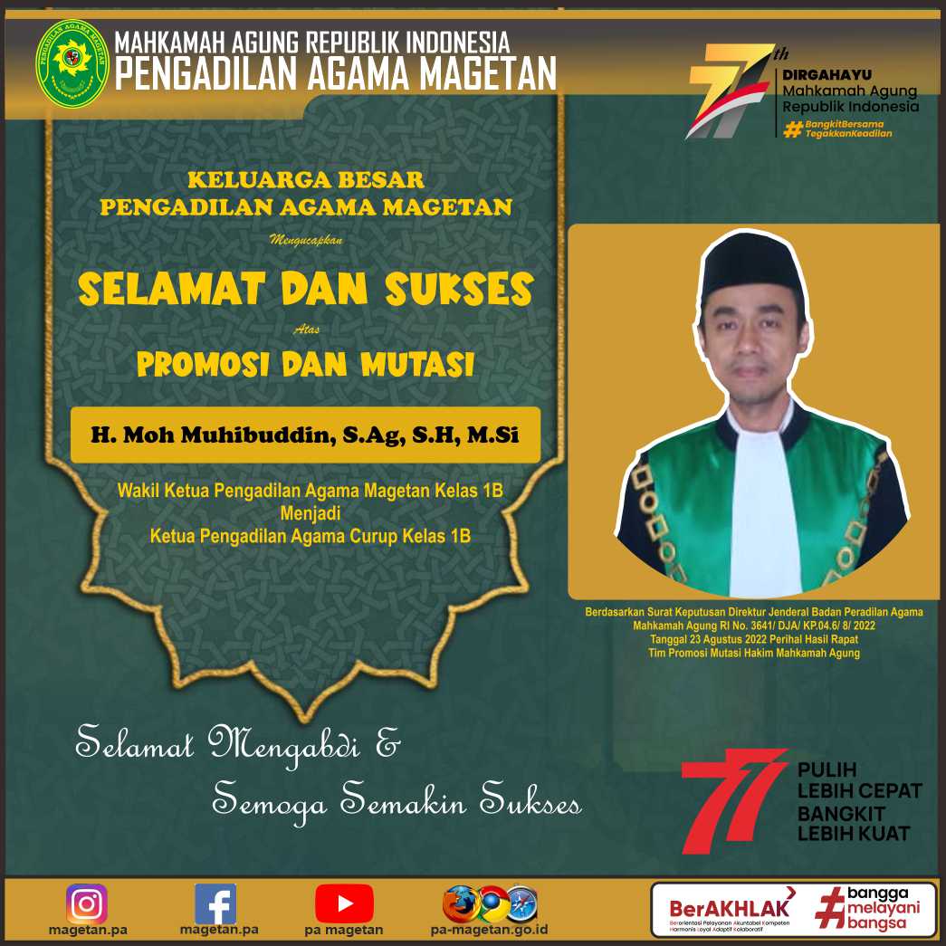 Ucapan Selamat H. Moh Muhibuddin, S.Ag, S.H, M.Si Written by Admin on 25 August 2022. Written by Admin on 25 August 2022. Hits: 1049