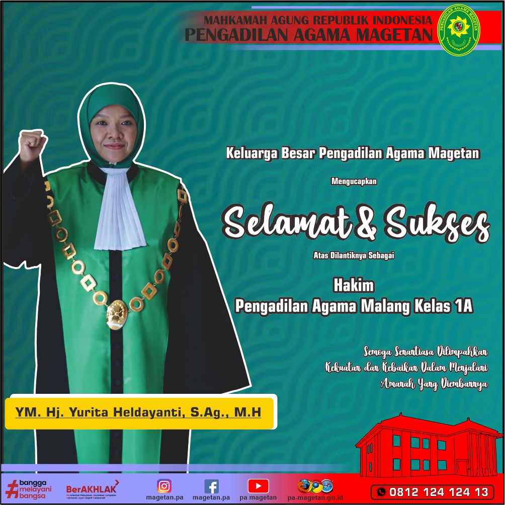 Selamat & Sukses Atas Dilantiknya YM. Hj. Yurita Heldayanti, S.Ag, M.H Written by Admin on 28 February 2023. Written by Admin on 28 February 2023. Hits: 812