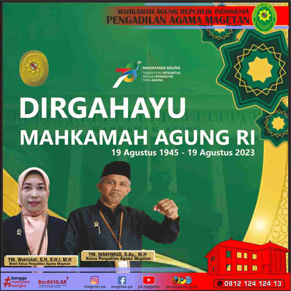 Dirgahayu Mahkamah Agung RI Yang Ke 78 Written by Admin on 19 August 2023. Written by Admin on 19 August 2023. Hits: 1067