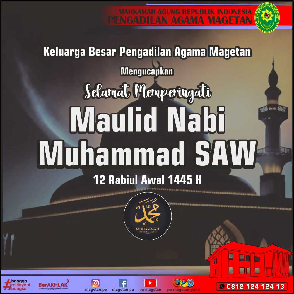 Selamat Memperingati Maulid Nabi Muhammad SAW (12 Rabiul Awal 1445 H) Written by Admin on 28 September 2023. Written by Admin on 28 September 2023. Hits: 652