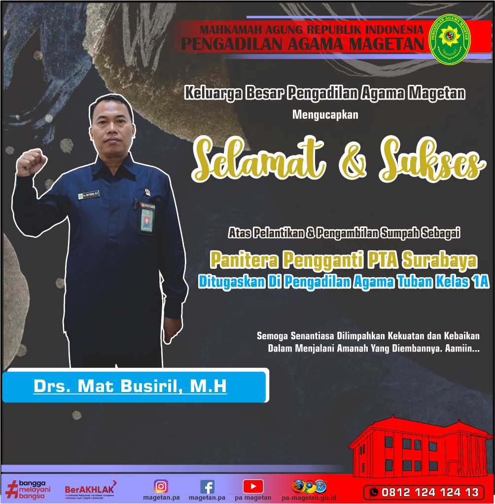 Selamat & Sukses Drs. Mat Busiril, M.H Written by Admin on 16 October 2023. Written by Admin on 16 October 2023. Hits: 783