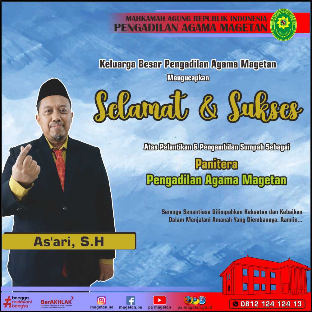 Selamat & Sukses As'ari, S.H Written by Admin on 20 October 2023. Written by Admin on 20 October 2023. Hits: 769