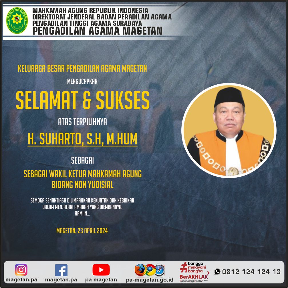 Selamat Atas Terpilihnya H. Suharto, S.H, M.Hum Written by Admin on 23 April 2024. Written by Admin on 23 April 2024. Hits: 610
