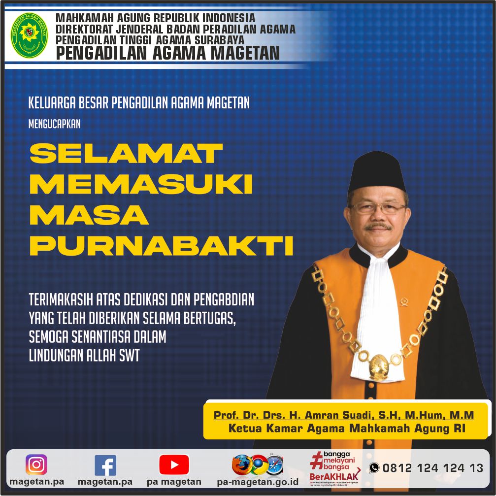 Selamat Memasuki Masa Purna Bakti Prof. Dr. Drs. H. Amran Suadi, S.H, M.Hum, M.M Written by Admin on 02 May 2024. Written by Admin on 02 May 2024. Hits: 702