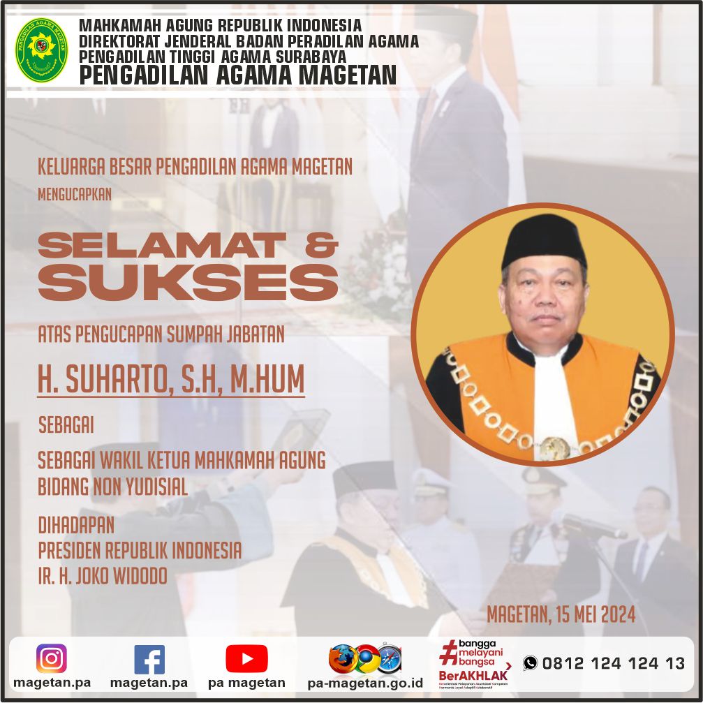 Selamat Atas Pengucapan Sumpah Jabatan H. Suharto, S.H, M.Hum Written by Admin on 15 May 2024. Written by Admin on 15 May 2024. Hits: 576