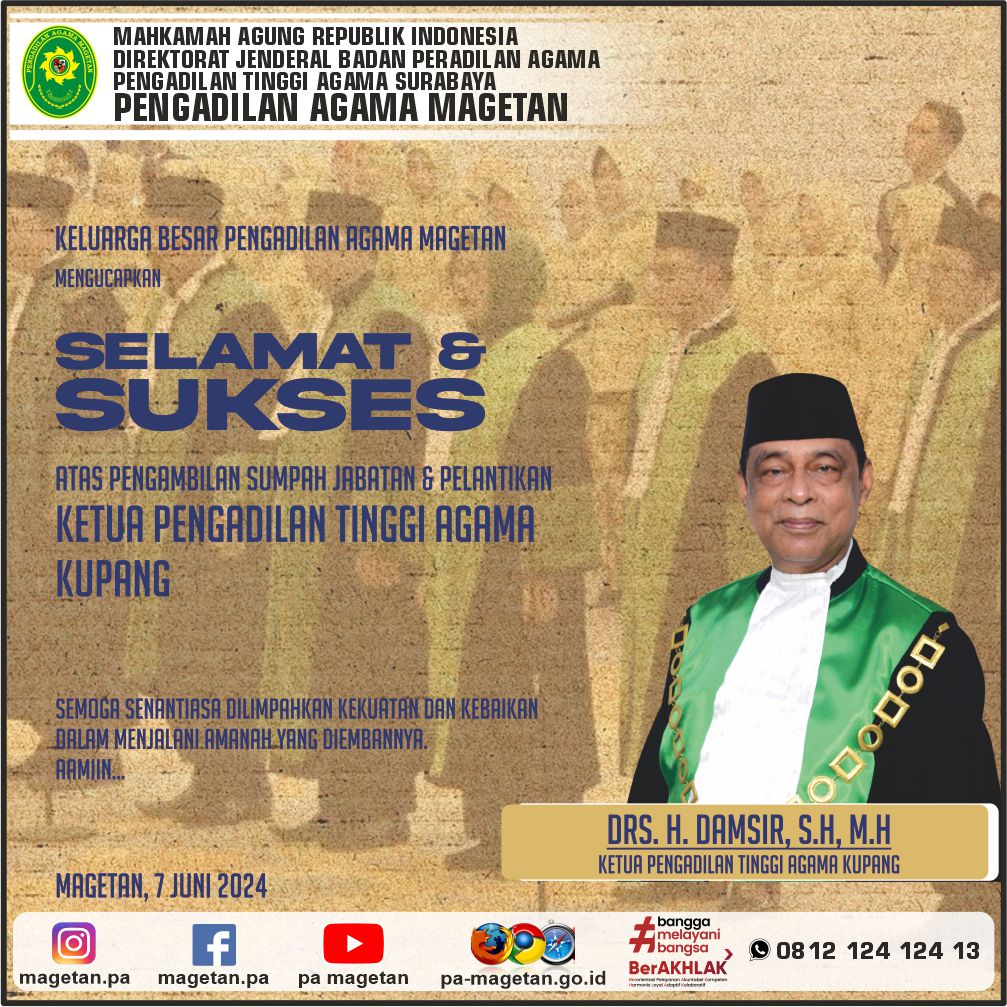 Selamat & Sukses Ketua Pengadilan Tinggi Agama Kupang (Drs. H. Damsir, S.H, M.H) Written by Admin on 07 June 2024. Written by Admin on 07 June 2024. Hits: 852