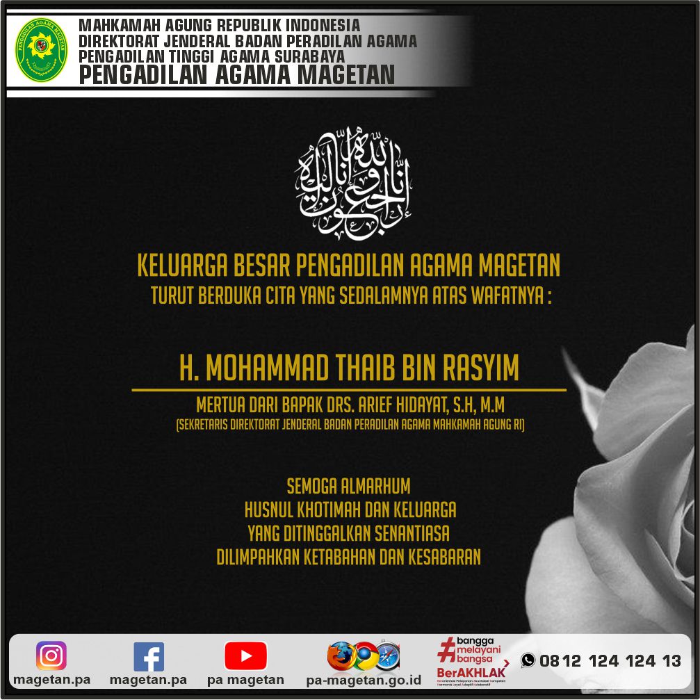 Turut Berduka Cita Atas Wafatnya : Bp. H. Mohammad Thaib Bin Rasyim Written by Admin on 07 June 2024. Written by Admin on 07 June 2024. Hits: 721
